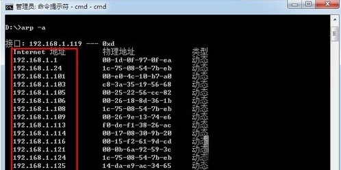 5、從返回結(jié)果可以看到本地局域網(wǎng)中的所有與本機(jī)通信的計(jì)算機(jī)IP地址。通過(guò)ping 主機(jī)名得到IP地址。