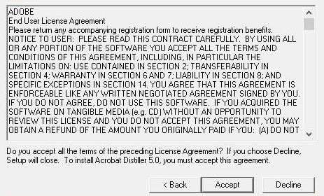 3、這里是閱讀acrobat distiller 軟件安裝協(xié)議的地方,點(diǎn)擊accept即可