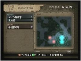 要點(diǎn):第2回合トバック,ムワリム,ビーゼ一3人于地圖右下作為友軍登場(chǎng),他們會(huì)向左方移動(dòng),沙扎與トバック對(duì)話后3人一起加入。牢房里的士兵被救出后,會(huì)從地圖左上方脫出,同樣跟獎(jiǎng)勵(lì)經(jīng)驗(yàn)有關(guān),等他們?nèi)棵摮鲈僦茐哼^關(guān)。