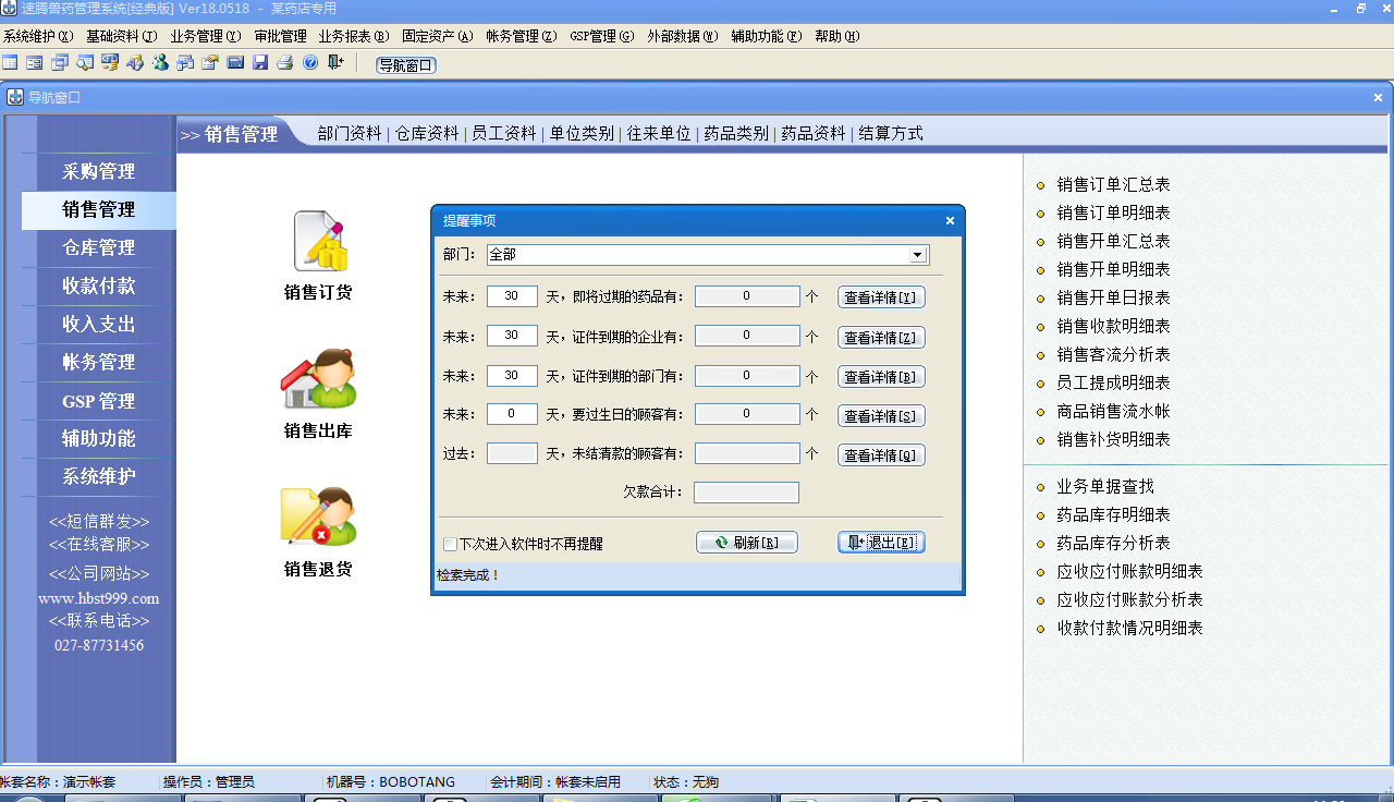 31、近效期藥品自動(dòng)提醒。進(jìn)入軟件時(shí),計(jì)算機(jī)會(huì)根據(jù)設(shè)置的報(bào)警期限自動(dòng)提示。