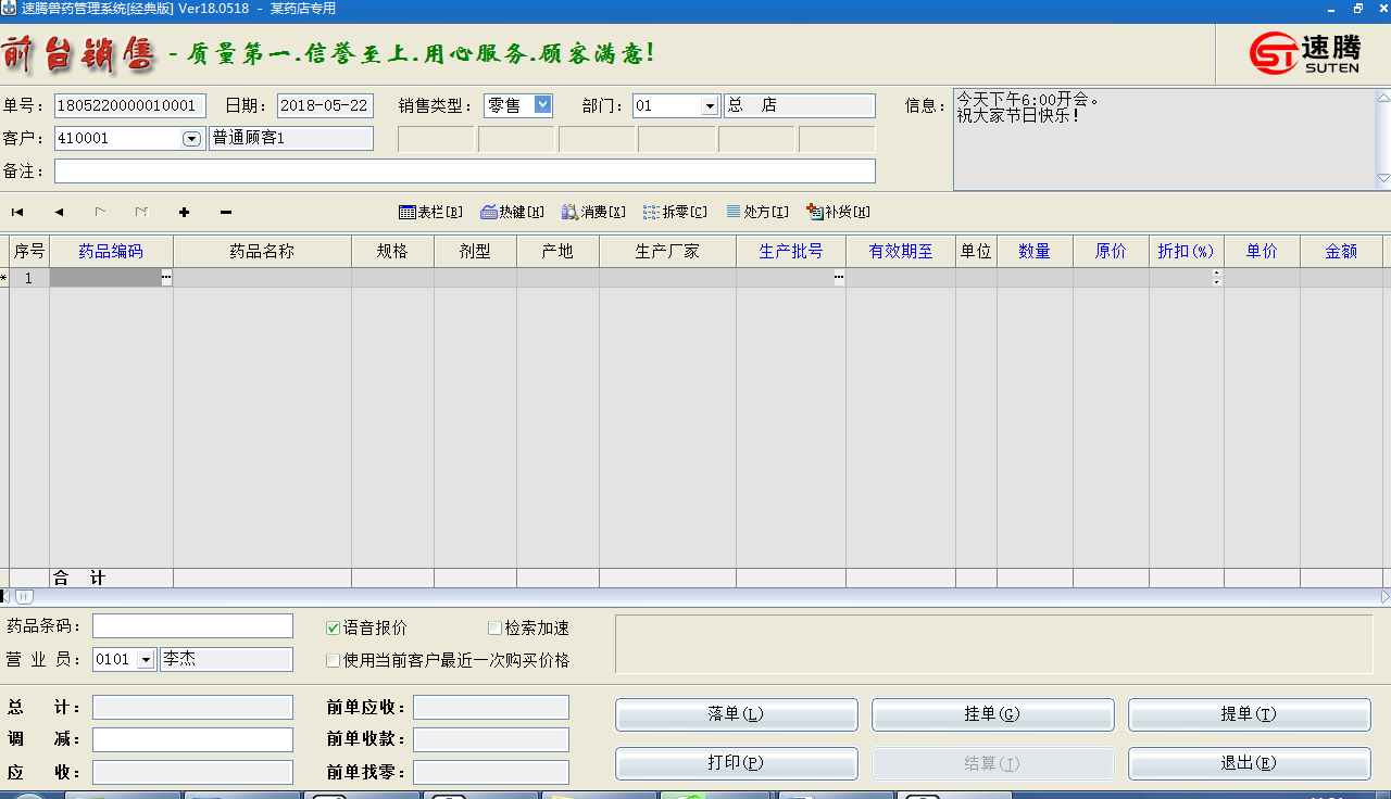 5、有專業(yè)的前臺(tái)Pos銷售功能,支持條形碼、小票打印、錢箱、顧客顯示屏、會(huì)員卡等。可以根據(jù)自已喜好設(shè)計(jì)各種有特性的打印格式。銷售時(shí)可以隨時(shí)切換打印格式,快捷鍵豐富,有效可以用鍵盤取代鼠標(biāo)的操作;