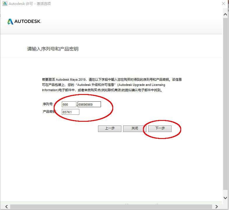 4、在打開的瑪雅maya輸入序列號(hào)窗口中輸入序列號(hào)666-69696969 ,產(chǎn)品密鑰 657K1,輸入完成后點(diǎn)擊【下一步】。