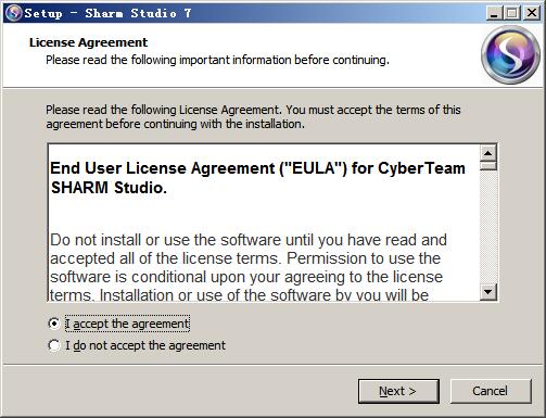 1、雙擊“Sharm_Studio_7-10.exe”出現(xiàn)協(xié)議,選擇i accept