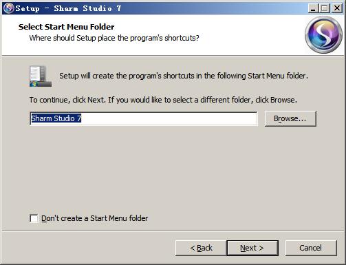 3、選擇開始菜單文件夾的名稱,默認(rèn)為“Sharm Studio 7”
