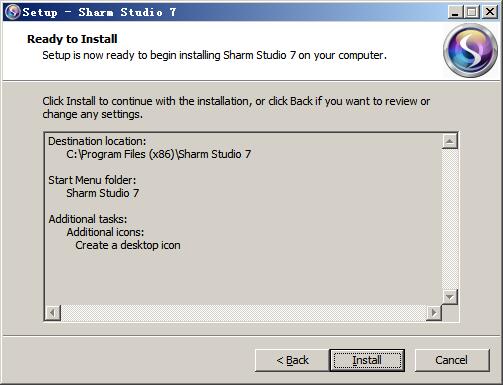 2、點(diǎn)擊next選擇軟件安裝目錄,默認(rèn)為“C:\Program Files (x86)\Sharm Studio 7”