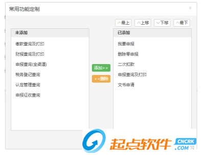 常用功能中列舉出納稅人辦稅常用的功能鏈接如我要申報、申報查詢及打印等,納稅人可根據(jù)自己的習慣,點擊右上角的按鈕,通過“添加”或“刪除”實現(xiàn)常用功能的自定義。