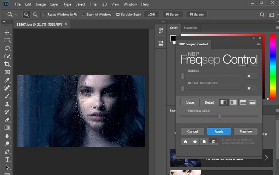 3、允許您在 "拆分" 視圖中預(yù)覽基本 (低頻) 和細(xì)節(jié) (高頻) 結(jié)果, 或在應(yīng)用前逐個(gè)查看, 以確保獲得所需的結(jié)果