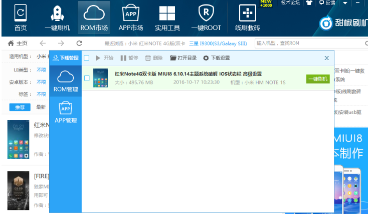 2、進(jìn)入下載管理,選擇刷機(jī)包刷入(其他選項(xiàng)默認(rèn))。