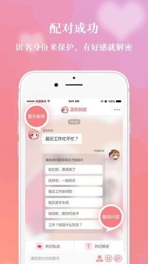 在假面邂逅階段雙方均不知道對方的真實身份,在匿名身份的保護(hù)下通過真心話問答了解彼此,有好感就發(fā)起解密,只有經(jīng)過對方同意解密后才能看到雙方的真實身份,如果三觀不合立馬可以解除匹配永不相見。