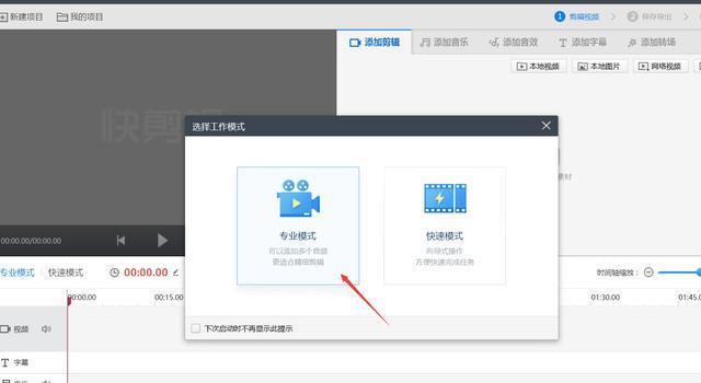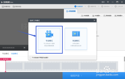 選擇剪輯模式,這里便于觀察我們選擇專業(yè)模式
