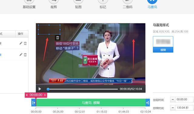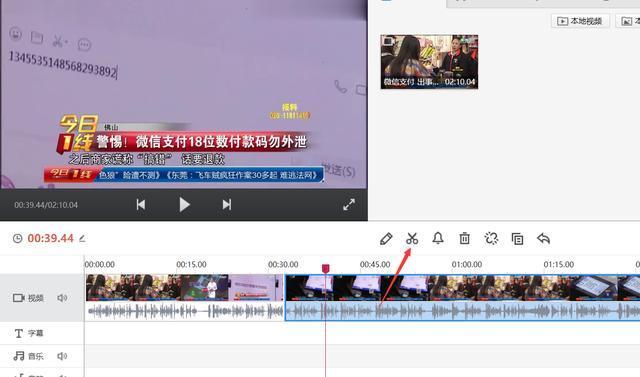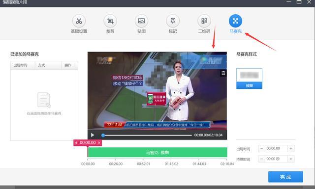 如果遇到視頻中間的一部分需要去水印,播放視頻,播放到需要去水印的地方后,用剪刀將其剪成獨(dú)立片段,然后在這一個(gè)片段上單獨(dú)添加馬賽克即可。不影響其它的視頻片段,操作方法如圖。