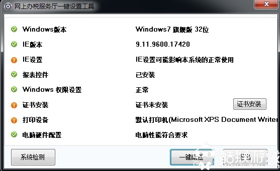 4、系統(tǒng)顯示網(wǎng)上辦稅服務(wù)廳一鍵設(shè)置工具頁(yè)面,進(jìn)行相關(guān)設(shè)置并安裝證書(shū)和報(bào)表控件;