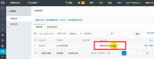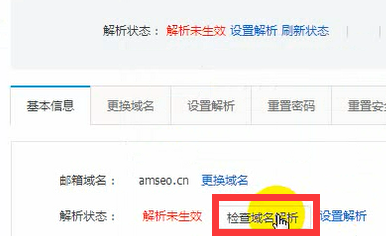 5.進(jìn)入企業(yè)郵箱選擇后,首先單擊解析未生效后面的馬上設(shè)置,然后檢查域名解析,如圖