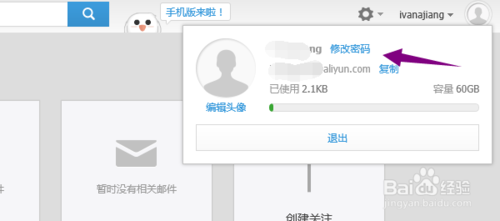 進(jìn)入阿里云郵箱界面以后,在右上角處的賬號(hào)名稱旁邊的有一個(gè)倒三角點(diǎn)擊這個(gè)三角就可以看到【修改密碼】點(diǎn)擊進(jìn)入。
