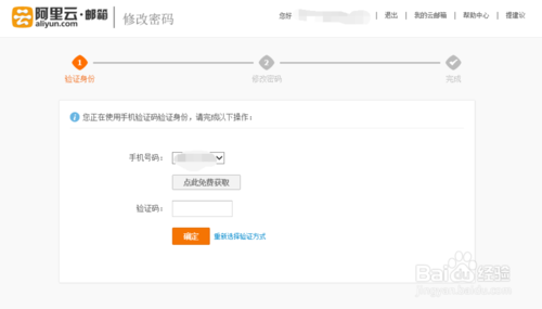 在這里顯示出你手機(jī)號(hào)碼的前三位,后四位。然后獲得一個(gè)驗(yàn)證碼,再輸入進(jìn)去點(diǎn)擊【確定】。