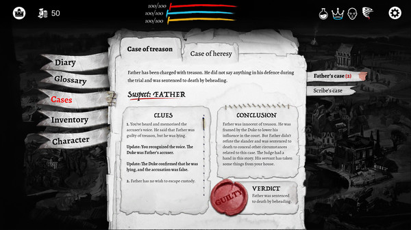 玩家控制的劊子手擁有著超凡感知能力,來辨別事件的真相;