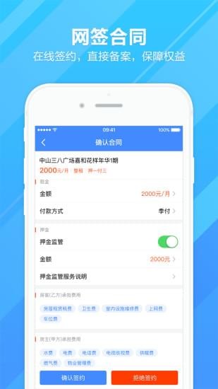 3.簽約:感興趣的房子一鍵申請線上簽約,平臺擔保,永遠告別被坑蒙拐騙的痛苦體驗;
