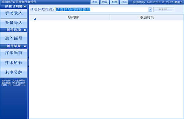 金獅樓盤隨機(jī)搖號系統(tǒng)支持?jǐn)?shù)據(jù)批量導(dǎo)入和手動錄入,搖號方式可以分批搖號、搖順序號、逐一搖號等各種方式,搖號過程中數(shù)據(jù)隨機(jī)匹配,公平公正,搖號結(jié)果支持打印、查詢、導(dǎo)出Excel和Word等電子文檔,方便存檔,軟件界面功能清晰明了,操作起來簡單易用,我們提供遠(yuǎn)程演示軟件和語音解說。另外我們提供軟件定制,可以根據(jù)客戶的需求來針對性定制開發(fā)軟件。