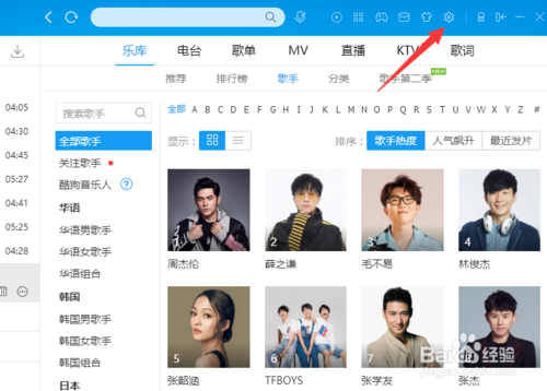 酷狗音樂播放器怎么將歌詞字幕下載到桌面上?1、打開音樂播放器的界面后,可以在右上角看到一個(gè)設(shè)置的按鈕。點(diǎn)擊打開。