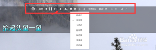 4、可以在桌面上看到歌詞顯示的效果,還可以調(diào)整字體和播放上一首和下一首?;蛘甙l(fā)現(xiàn)歌詞不對,和調(diào)整播放的場景效果。