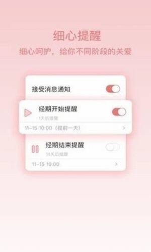 【貼心提醒】你可以自由定義提醒項目、時間、甚至內(nèi)容,讓你從容面對大姨媽。