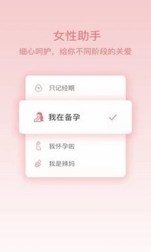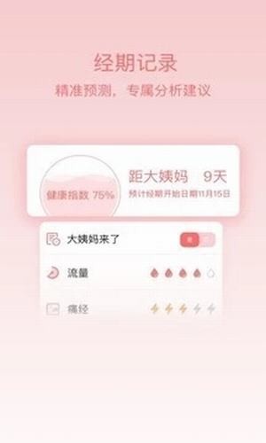 姨媽呵護助手app精準預測,科學記錄每一次生理期,越用分析越準確??茖W備孕,提供月經(jīng)期保健、育兒、產(chǎn)后恢復、生活保健等各類專業(yè)全面的知識,幫你解決經(jīng)期、懷孕、備孕、育兒不同階段的困擾??茖W呵護女性成長每一天。