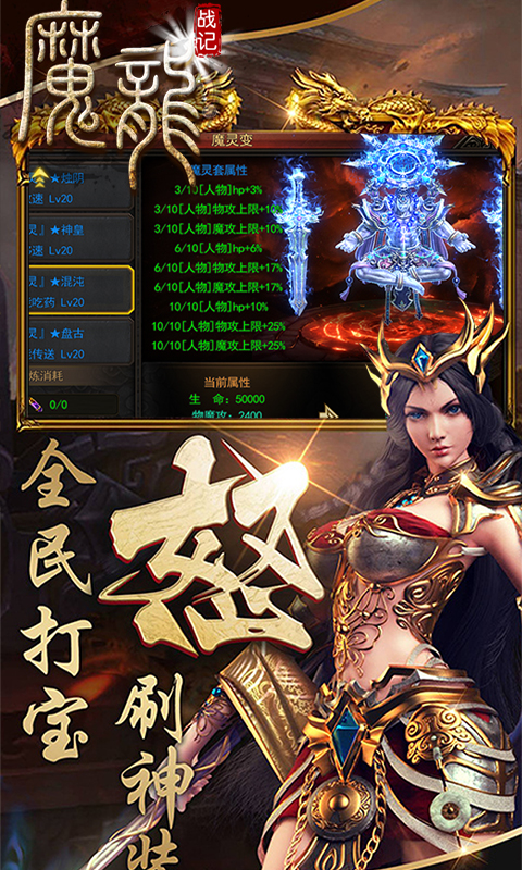 《魔龍戰(zhàn)記》是一款多人角色扮演實時在線熱血競技類型游戲,游戲采用搖桿+快捷技能按鍵操作,2.5D視角,讓玩家擁有上帝視角自由進行PK打?qū)?,完美兼容手機與WIFI網(wǎng)絡,實現(xiàn)同屏萬人染血攻城激情爭奪沙城歸屬。各大試練,血色攻城,幫會BOSS,幫會戰(zhàn)爭,九轉(zhuǎn)歸真,玄天煉器,魔王降臨,怪物攻城……豐富多樣的玩法,血脈僨張的刺激挑戰(zhàn),所有裝備神器通通打怪掉落,霸氣稱號,酷炫技能,強力寵物,等你來戰(zhàn)!