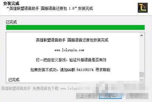 打開語音包安裝程序,路徑選擇你的英雄聯(lián)盟目錄,點確定,開始安裝