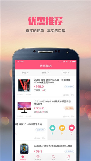 百度惠app是百度旗下一款專門推薦優(yōu)惠的軟件,集國(guó)內(nèi)主流電商打折商品、優(yōu)惠券、促銷活動(dòng)、用戶曬單、購(gòu)物經(jīng)驗(yàn)等功能于一身,更有大波有獎(jiǎng)活動(dòng)等你來(lái)參與。天天都能省一點(diǎn),何必等到雙十一!