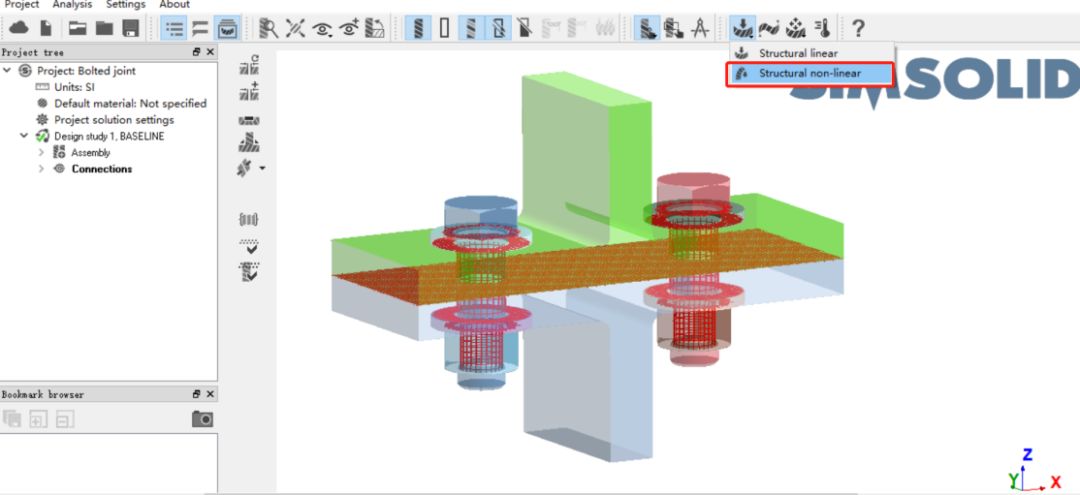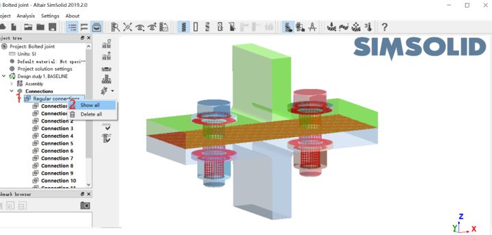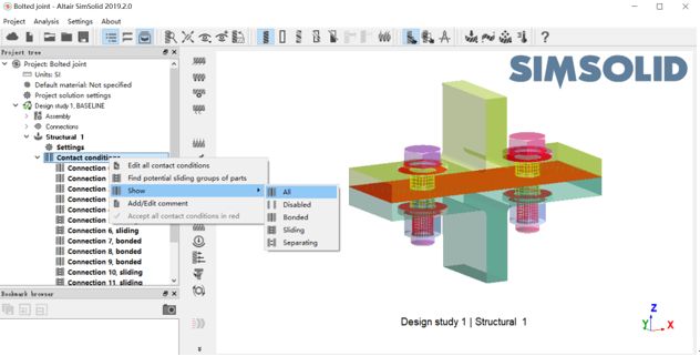 SimSolid如何在螺栓處的接觸也能自動(dòng)創(chuàng)建SimSolid中自動(dòng)創(chuàng)建接觸時(shí),也會(huì)在螺栓處自動(dòng)創(chuàng)建接觸。這需要最初導(dǎo)入的幾何模型包含螺栓的三維實(shí)體模型。我們來(lái)看一看螺栓處的接觸是如何識(shí)別和自動(dòng)創(chuàng)建的,具體操作如下: