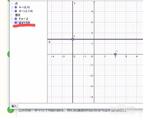 過B點做一條平行于x軸的直線g,我們知道拋物線必然會與這條直線相交。
