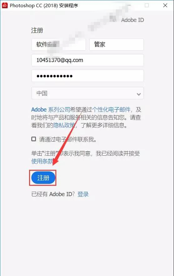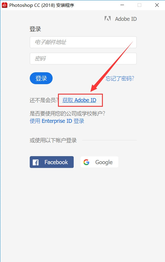 4.首次安裝的時(shí)候我們需要注冊一個(gè)賬號,點(diǎn)擊【獲取Adobe ID】;已經(jīng)有賬號的用戶可以直接登陸。