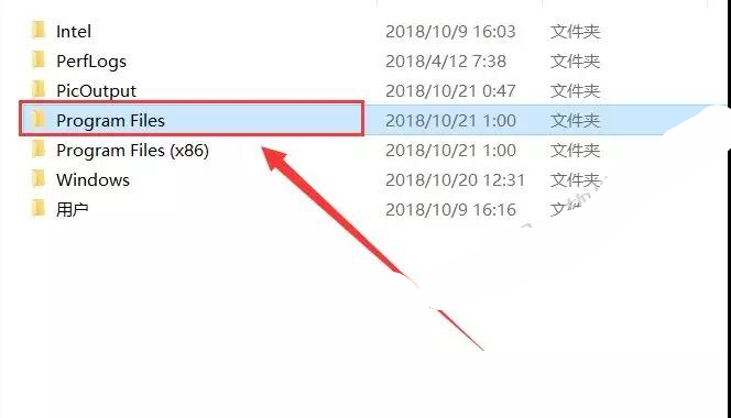 11.打開【Program Files】文件夾。溫馨提示:32位的操作系統(tǒng)在【Program Files(x86)】文件夾里面。