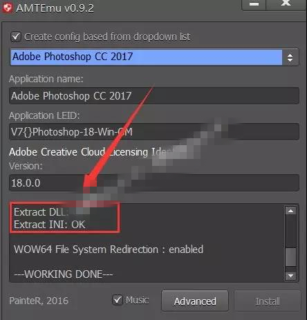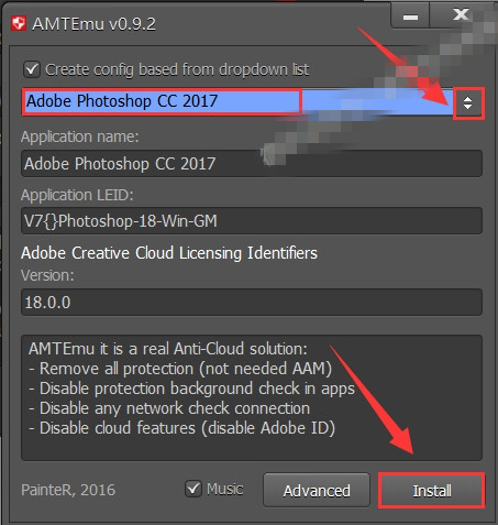 17.點(diǎn)擊下拉菜單選擇【Adobe Photoshop CC 2017】,然后點(diǎn)擊【Install】。