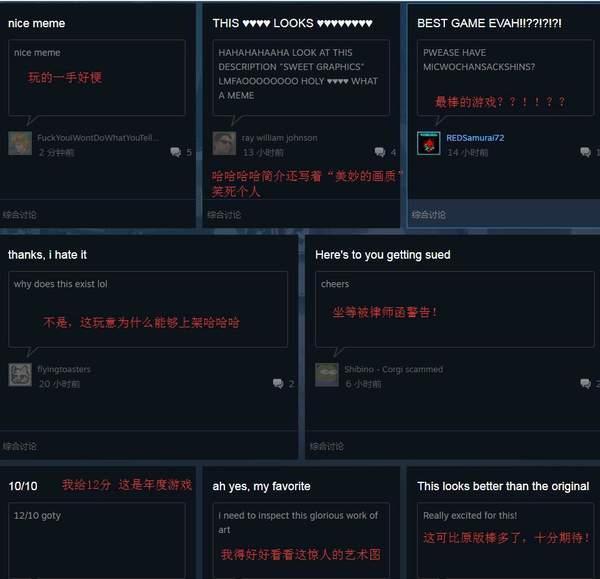 顯然這大概率是迫不及待的粉絲在惡搞CDPR的全新力作,玩家們也在社區(qū)中為腦洞清奇的作者喝彩。另外游戲的發(fā)行日期赫然寫著2019年7月,應(yīng)該是開發(fā)者為了讓游戲登上近日發(fā)售排行榜的小伎倆,感興趣的朋友可以前往Steam了解更多詳情。