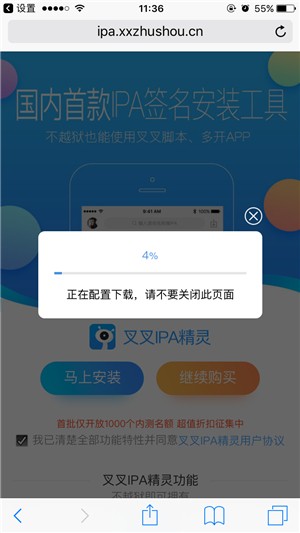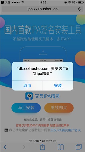 1. 前往ipa.xxzhushou.cn,一鍵安裝頁面。
