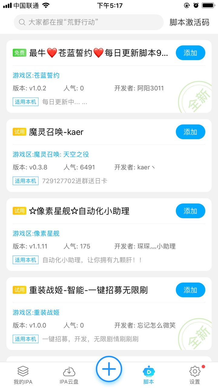 目前提供IPA云盤供用戶選擇所需IPA(游戲)進(jìn)行簽名安裝。安裝后的游戲包,如有附加腳本引擎,啟動(dòng)時(shí)自動(dòng)出現(xiàn)懸浮窗,可在非越獄環(huán)境下使用腳本功能。