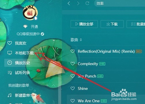 這時QQ音樂就會自動下載當(dāng)前選中的文章,可以點擊左側(cè)邊欄的“本地和下載’菜單項