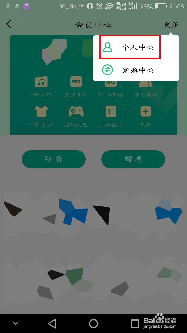 進入會員中心后點擊頁面右上角的“更多”,然后選擇“個人中心”。