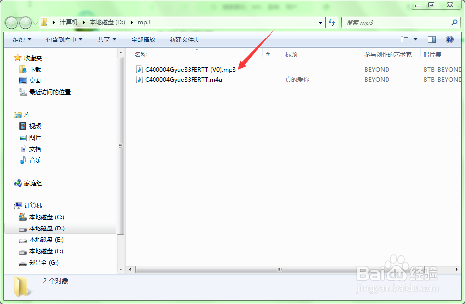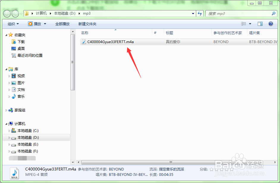 下載完成后會彈出一個新的對話框,點擊其中的“文件夾”按鈕,將會打開文件所在的窗口,但文件的擴展名為.m4a,并不是我們想要的mp3文件,所以還要進行轉(zhuǎn)換操作。