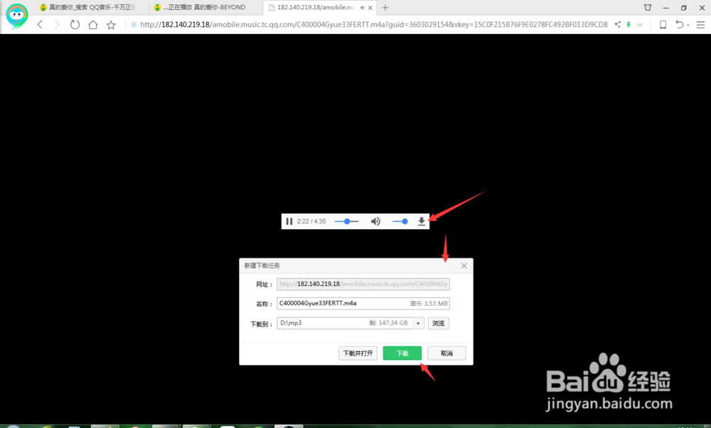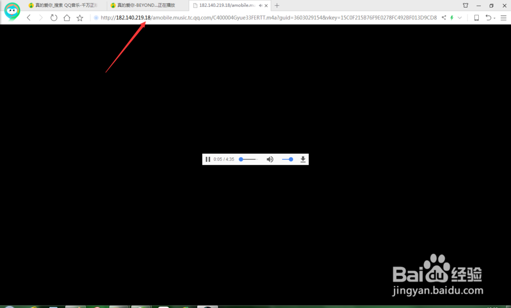 新建一個網(wǎng)頁,在地址欄中粘貼剛才復(fù)制的鏈接并回車,將會打開一個黑色底面的播放窗口。