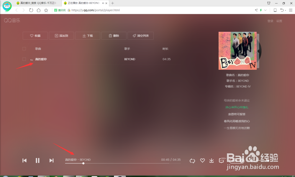 點擊此歌曲后面的播放按鈕,此時網(wǎng)面跳轉(zhuǎn)到播放界面后開始播放。