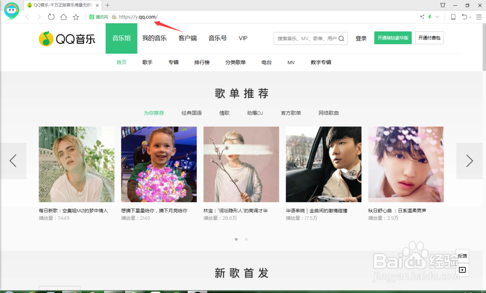 打開IE瀏覽器,在地址欄中輸入QQ音樂的官方地址,進入QQ音樂官方網(wǎng)站的首頁。