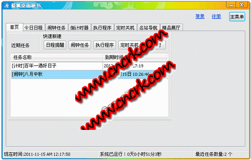 藍狐桌面秘書(電腦鬧鐘)軟件具有精巧易用的特性和非常強大的功能,是個起定時提醒的好幫手。