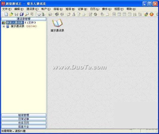 運(yùn)行速度極快(C++源碼,效率極高),占用內(nèi)存極少。 超級(jí)通訊王是各界人士必備的信息管理與交流工具,強(qiáng)檔出擊,傾情巨獻(xiàn)!