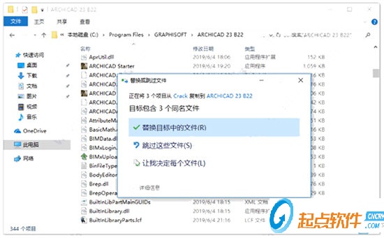 1、軟件安裝完成后,復制Crack里所有文件到軟件安裝目錄下替換原文件;默認路徑【C:\Program Files\GRAPHISOFT\ARCHICAD 23 B22】