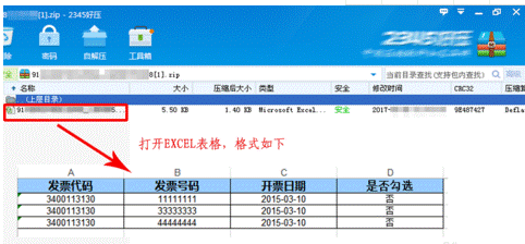 雙擊打開壓縮包,觀察到還有一個EXCEL文件,雙擊該文件打開,先另存EXCEL文件,然后根據(jù)需要篩選出需要勾選的發(fā)票清單,并將對應(yīng)的“是否勾選”列的值改為“是”,如果要對當(dāng)月已勾選(尚未執(zhí)行勾選確認(rèn)操作)的發(fā)票進(jìn)行回退處理(僅限于未掃描認(rèn)證過的發(fā)票),將已勾選過的發(fā)票信息填寫到文件中,并將“是否勾選”列改為“否”,即可實現(xiàn)勾選操作的回退處理