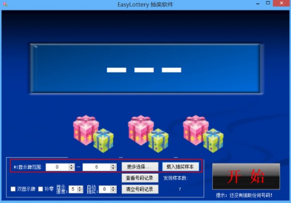 1、 EasyLottery抽獎軟件支持隨機(jī)抽號碼,可以是單個(gè)數(shù)字0-99999999,或者兩個(gè)數(shù)0-999 和 0-999,可以設(shè)置抽取號碼的范圍。也可以自定義抽取樣本,例如抽取人名,特殊字符等。2、已抽取的號碼不再重復(fù)抽取,有記錄,且可以保存。 清空已抽取號碼的記錄,即可重新抽取。 可以自動連續(xù)抽獎??梢匀琳故尽?br />3、搞活動、做節(jié)目會需要的。