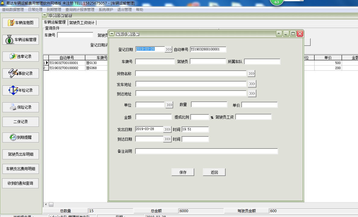 易達(dá)物流運(yùn)輸車(chē)輛費(fèi)用管理軟件(支持單機(jī)版,網(wǎng)絡(luò)版,連鎖分公司管理,車(chē)隊(duì)權(quán)限管理等)支持多臺(tái)電腦連網(wǎng)同時(shí)管理操作。主要面向企業(yè)事業(yè)單位,車(chē)輛運(yùn)營(yíng)公司,主要功能有駕駛員檔案、車(chē)輛檔案管理、油卡管理、配件信息、車(chē)輛狀態(tài)圖管理、車(chē)輛運(yùn)輸管理、車(chē)輛加油管理、車(chē)輛維修管理、車(chē)輛規(guī)費(fèi)管理、車(chē)輛保養(yǎng)管理、車(chē)輛違章管理、車(chē)輛事故管理、車(chē)輛年檢管理、車(chē)輛保險(xiǎn)管理、病事假管理、車(chē)輛收入管理、短信管理等,并有車(chē)輛年檢到期提醒、車(chē)輛保險(xiǎn)到期提醒、車(chē)輛保養(yǎng)到期提醒、車(chē)輛規(guī)費(fèi)到期提醒、駕照到期提醒,可分車(chē)隊(duì)管理車(chē)輛,是高效的車(chē)輛管理軟件,車(chē)輛管理系統(tǒng)。支持駕駛員工資管理。