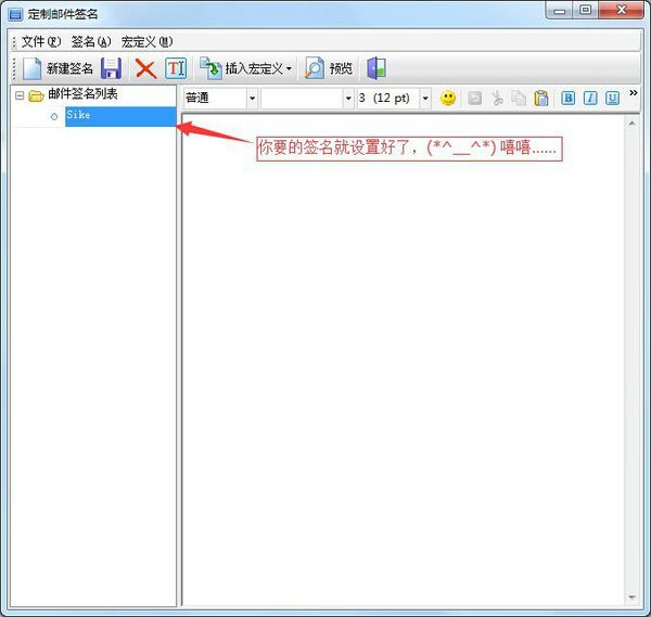 4.單擊【確定】按鈕,你要的簽名就設(shè)置完成了